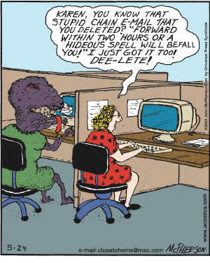 From Erik Hogstrom via Charles Apple.Cartoon drawn by John McPherson, 24 May 2004.photo source: ChainMailColour or else ChainMailBlackAndWhite from GoComics