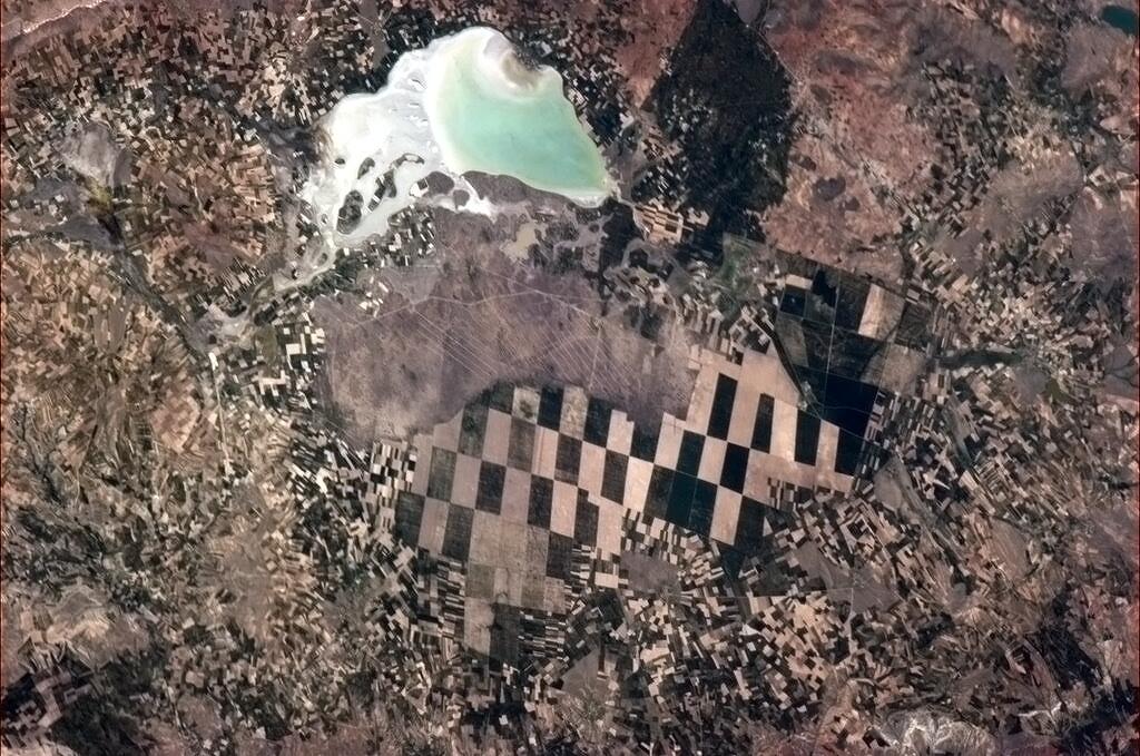 Photographed by Commander Chris Hadfield. Little farmers, big farmers and nature, in Turkey.photo source: Twitter from CommanderHadfield