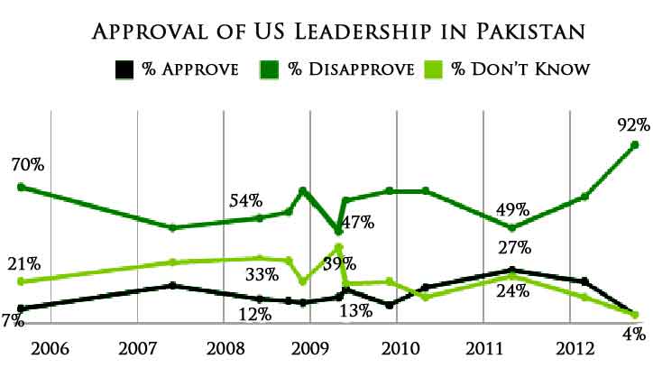 Will countries transition to methods of aggression that rely heavily on remotely-operated armed drones? (Their use is up up 700% under Obama to where now they constitute up to 10% of overall munitions deployed — and not by the military but by civilians working for the CIA.) People who order assaults may be increasingly alienated from the process of moral deliberation surrounding the premeditated killing of others. (But is that somehow less of an issue with cruise missiles or high-altitude bombing?) Many who are against drones claim they create more militants than they kill. The perception of drone strikes amongst Pakistanis is perpetuated over the Pakistani media, claiming they kill civilians indiscriminately. (Would Pakistanis view the US more favourably if they used artillery or bombers instead of drones? Very unlikely.) In 2011, a Pew Research Center poll found only 12% of Pakistanis view the US favourably. A more recent poll saw that figure drop to 4%. Additionally, the fact that drone attacks are secretive (even after the fact) exacerbates public anger and suspicion. If they were seen as just, acceptance would be higher.