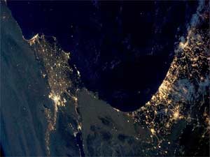 Though the small version may not show it well, the streetlights of Tartus are rather yellow and bright while those of Latakia are bluer and less luminous. The history of Tartus goes back to the second millennium BC when it was founded as a Phoenician colony. The city was favoured by Emperor Constantine. Latakia has been inhabited since the second millennium BC, but the modern-day city was first founded in the 4th century BC under the rule of the Seleucid empire. Latakia was subsequently ruled by the Romans, then the Ummayads and Abbasids in the 8th–10th centuries. Under their rule, the Byzantines frequently attacked the city, periodically recapturing it before losing it again to the Arabs, particularly the Fatimids. Afterward, it was ruled by the Seljuk Turks, Crusaders, Ayyubids, Mamluks, and Ottomans. Following World War I, Latakia was assigned to the French mandate of Syria, but became part of the Alawite State in 1922, proclaiming its independence a number of times until reintegrating into Syria in 1944. (In the bottom right picture above, the green marker is Tartus and the red one is Latakia.)