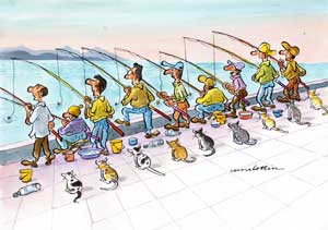 Cats wait for fishermen. Specific fishermen, by the looks of it.