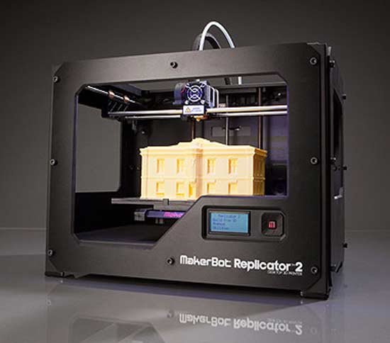 The cost of 3D printers has decreased dramatically since about 2010, with machines that used to cost $20,000 costing less than $1,000 today. For instance, as of 2013, several companies and individuals are selling parts to build various RepRap designs, with prices starting at about €400 / US$500. The open source Fab@Home project has developed printers for general use with anything that can be squirted through a nozzle, from chocolate to silicone sealant and chemical reactants. Printers following the project’s designs are available from suppliers in kits or in pre-assembled form at prices in the US$2,000 range. Several new 3D printers are aimed at the small, inexpensive market. One professional-grade 3D-printer costs US$1,499 and says it has “no fumes nor constant rattle during use.” MakerBot has unveiled a new model, which is the size of a mini-fridge and costs US$6,499. It can print objects the size of a human head. (A smaller version can create cupcake-sized objects and costs a mere US$1,375.) Stratasys, based in Minneapolis (and which itself merged with Israel-based Objet last year), has bought MakerBot, a company based in Brooklyn that’s sold more than 22,000 printers since it was founded 5 years ago. Its new Replicator 2 (pictured above) accounted for half those sales in 2013 alone. A series of 3D printing patents related to Selective Laser Sintering (SLS), a technology allowing additive manufacturing from a broad set of powder materials, has started to expire. More are expiring in 2014 and it is the later retiring patents that are some of the most exciting to low-cost printer manufacturers. These patents could provide them the ability to make printers that are more affordable and that print at higher resolutions. It’s possible a new series of low-cost printers could soon begin to proliferate.