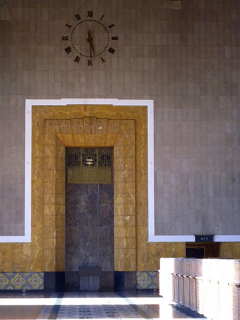 In contrast to the mission-influenced ceiling in this room, the doorways and windows bear evidence to the art deco period in which this was built. Photo by Non Paratus.photo source: Flickr from Photos