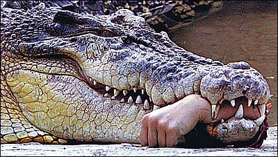 A crocodile attack The numbers are disturbing enough, but the menacing changes in behaviour are especially worrying to scientists. In Australia, the biologist Dr Scoresby Shepherd - who pointed out that in areas where shark attacks used to happen every 3 - 4 decades, they are now taking place at least once a year - has suggested that sharks are switching their prey to humans. In Los Angeles, Professor Lee Fitzhugh has come to the same conclusion about mountain lions. In San Francisco, a spate of sea lion assaults lead one local to comment, "I've been swimming here for 70 years and nothing like this has happened before." In Cameroon, for the first time, gorillas have been throwing bits of tree at humans. They're using weapons against us. It's easy to see why some suspect revenge. The theory that the animals of the 3 elements are conspiring against us gained popularity in 2006, when the Australian television presenter Steve Irwin was speared through the heart by a stingray off the north Queensland coast. In the aftermath, the phrase "freak accident" was used in news reports. When, just 6 weeks later, the same thing happened to James Bertakis, of Miami (he lived only because, unlike Irwin, he didn't pull the barbed sting out), people started wondering. Then, in March this year, Judy Kay Zagorski was boating on the Florida Keys when a stingray leapt from the water and fatally struck her in the face. Any sane person might decide that his theory, which posits that beasts are working in concert to take revenge on humans, is insane. But in the regions where the most research into HAC is being carried out, scientists have concluded that revenge for our myriad barbarities could indeed be a motive. All over Africa, India and parts of south-east Asia, elephants have started attacking humans in unprecedented numbers. Not just killing - they're rampaging through villages and stomping crops, terrorising local populations in any way they can. "What's happening today is extraordinary," Dr Gay Bradshaw, a world authority on elephants, told reporters in 2006. "Where for centuries humans and elephants lived in relatively peaceful co-existence, there is now hostility and violence." Bradshaw is the director of the Kerulos Centre for Animal Psychology and Trauma Recovery, in Oregon. "When you see reports of elephants running into crops or attacking people, they're highly stressed," she tells me. "And there are multiple stressors - violence, lack of food, lack of water; their families are being broken up; their society is collapsing. All of these things are human-derived."